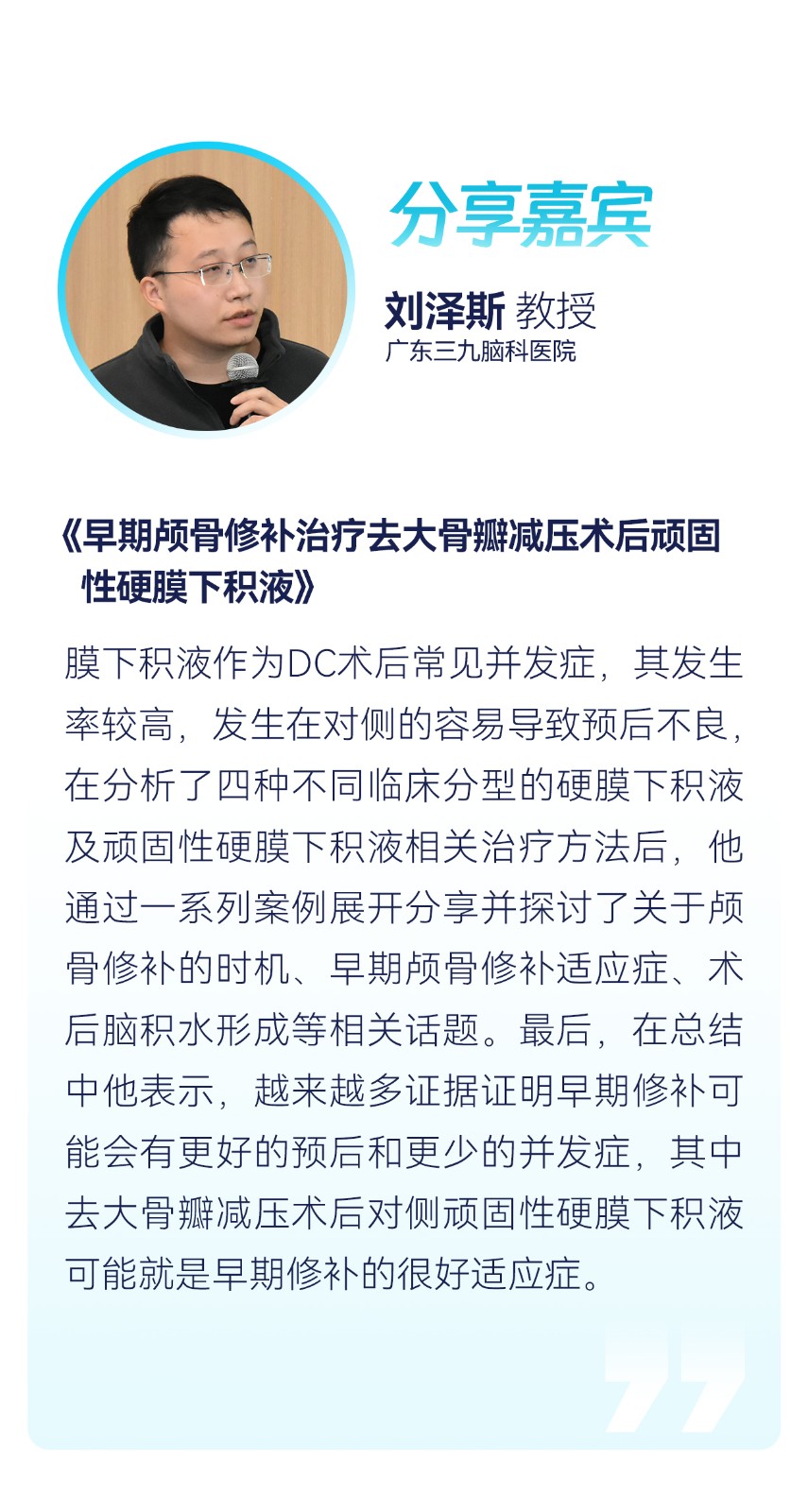 會議下半場,多位神經外科專家學者就自身經驗出發,通過具體的臨床案例分析展開對顱骨修補不同材料的對比、重型顱腦損傷的手術要點等相關話題展開分享。南方醫科大學珠江醫院王清華教授、汕頭市中心醫院金濤教授擔任會議主持。